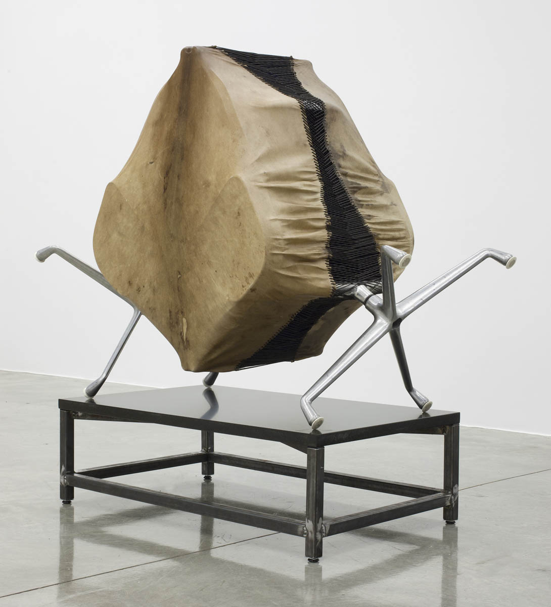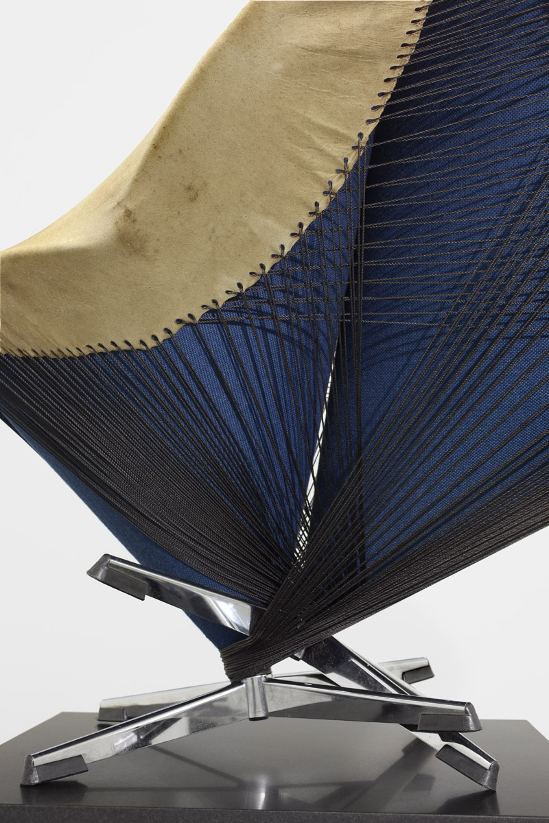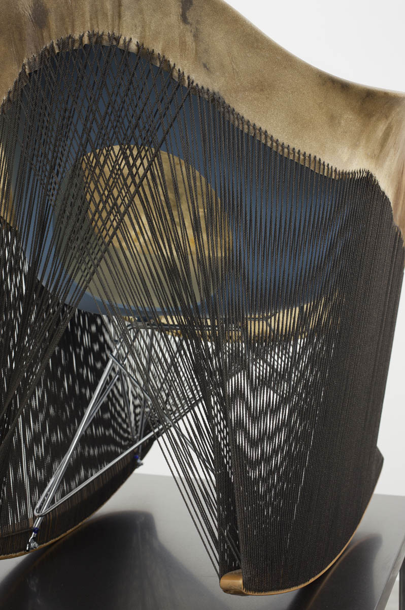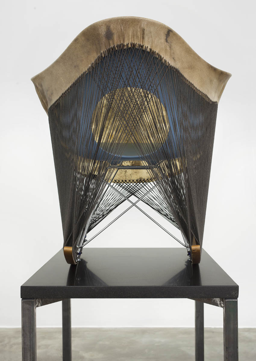 Womb Chair shell, elk hide, tarred twine, granite, steel