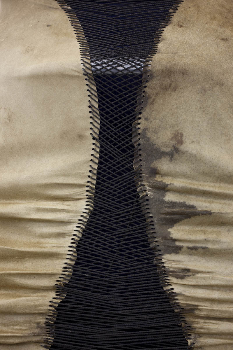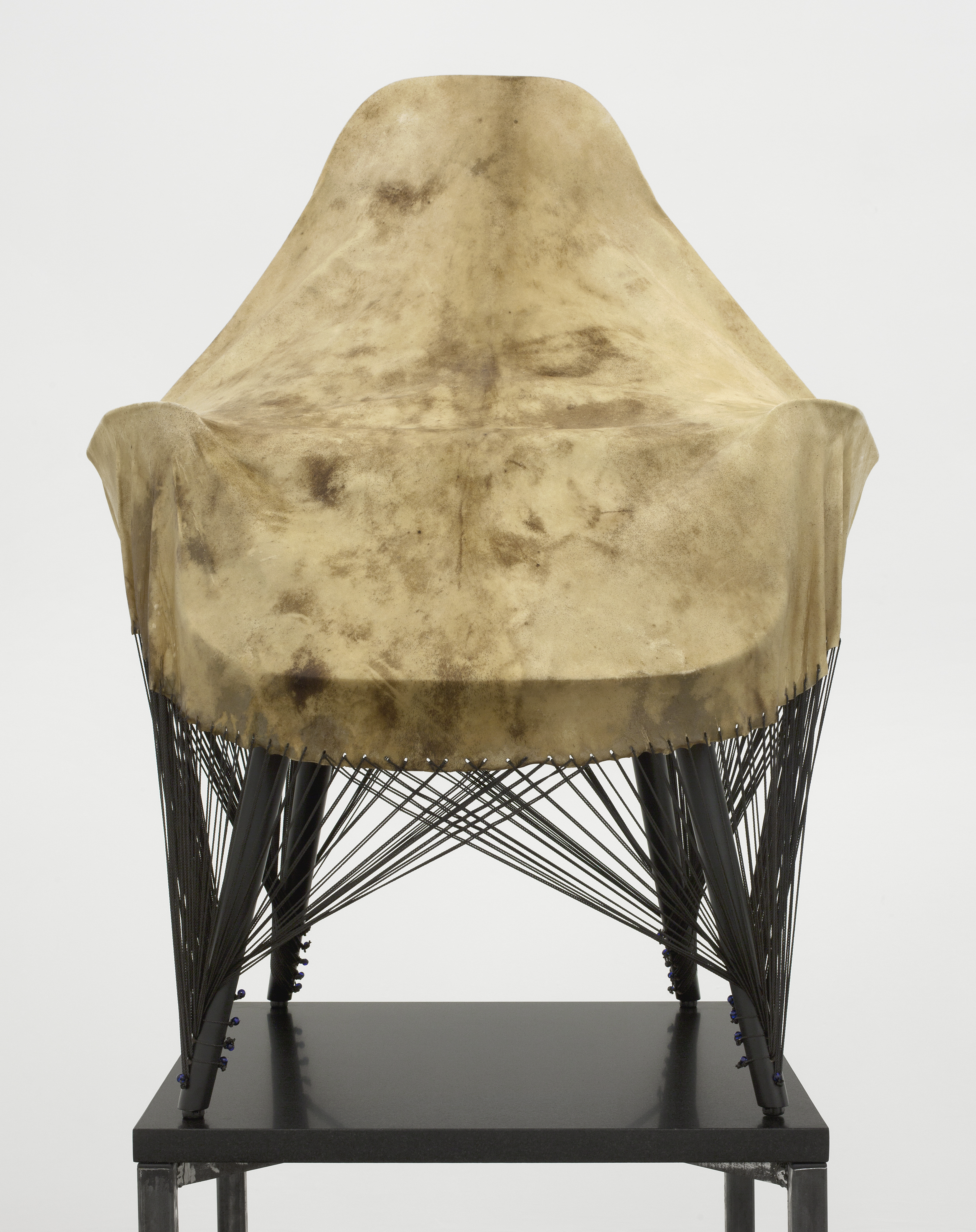 Organic Chair, elk hide, tarred twine, granite, steel