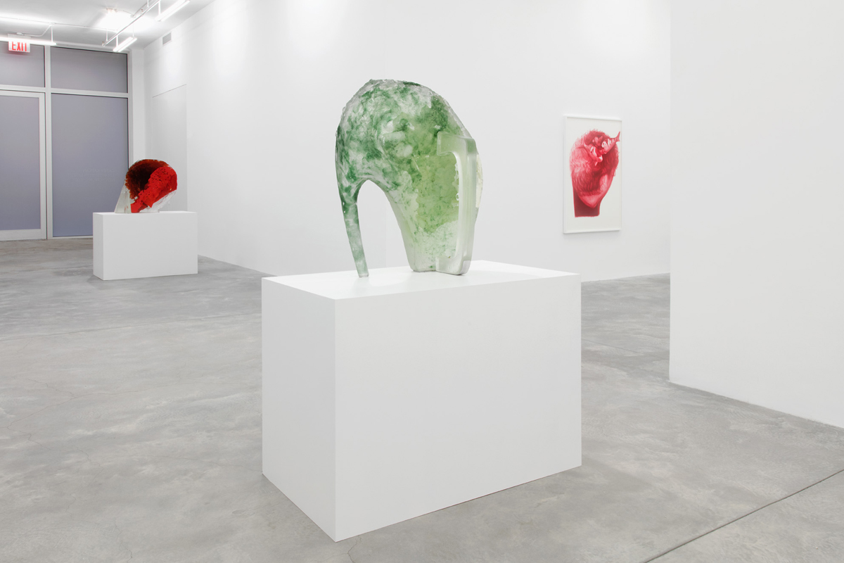new glass sculptures accompanied by Biro on paper drawings.
