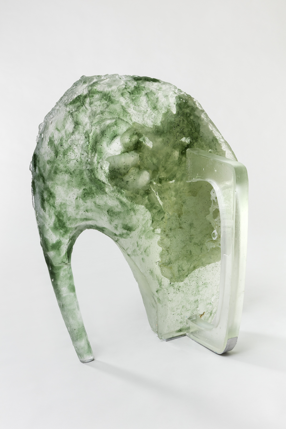 Perrone’s usage of cast glass originated from his previous series of fiberglass sculptures, entitled La fusion della