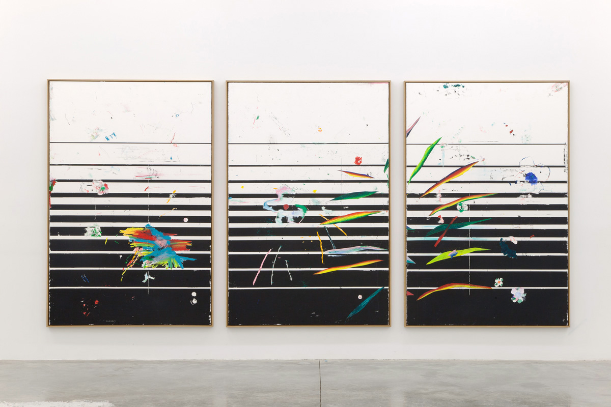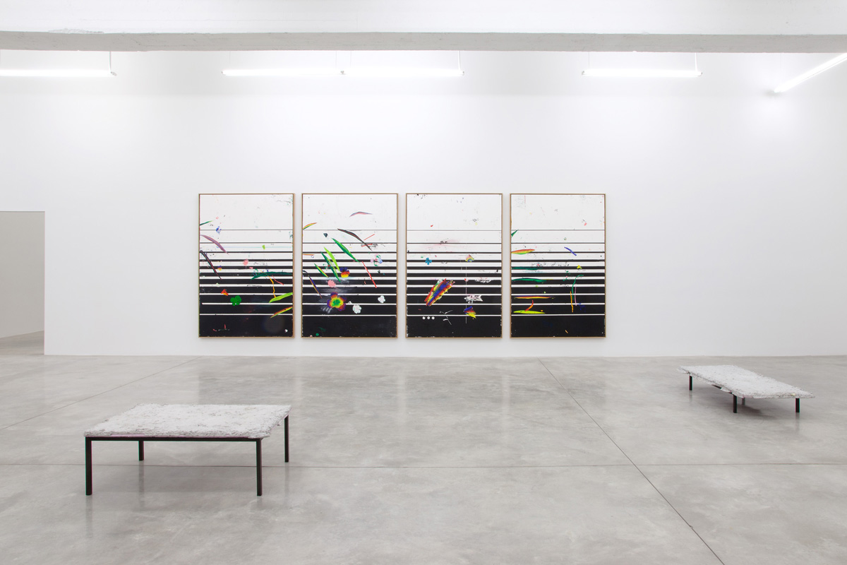 Harold Ancart’s work recombines and repeats familiar tropes and forms in a series of permutations, functioning almost as a stutter. Ancart has previously created works in which lines of pure pigment traverse the walls of the exhibition space, as well as found images of pools and tropical landscapes that have been sullied with burn marks, all sharing a sense of immediacy in their creation – the laying of a mark or a gesture.