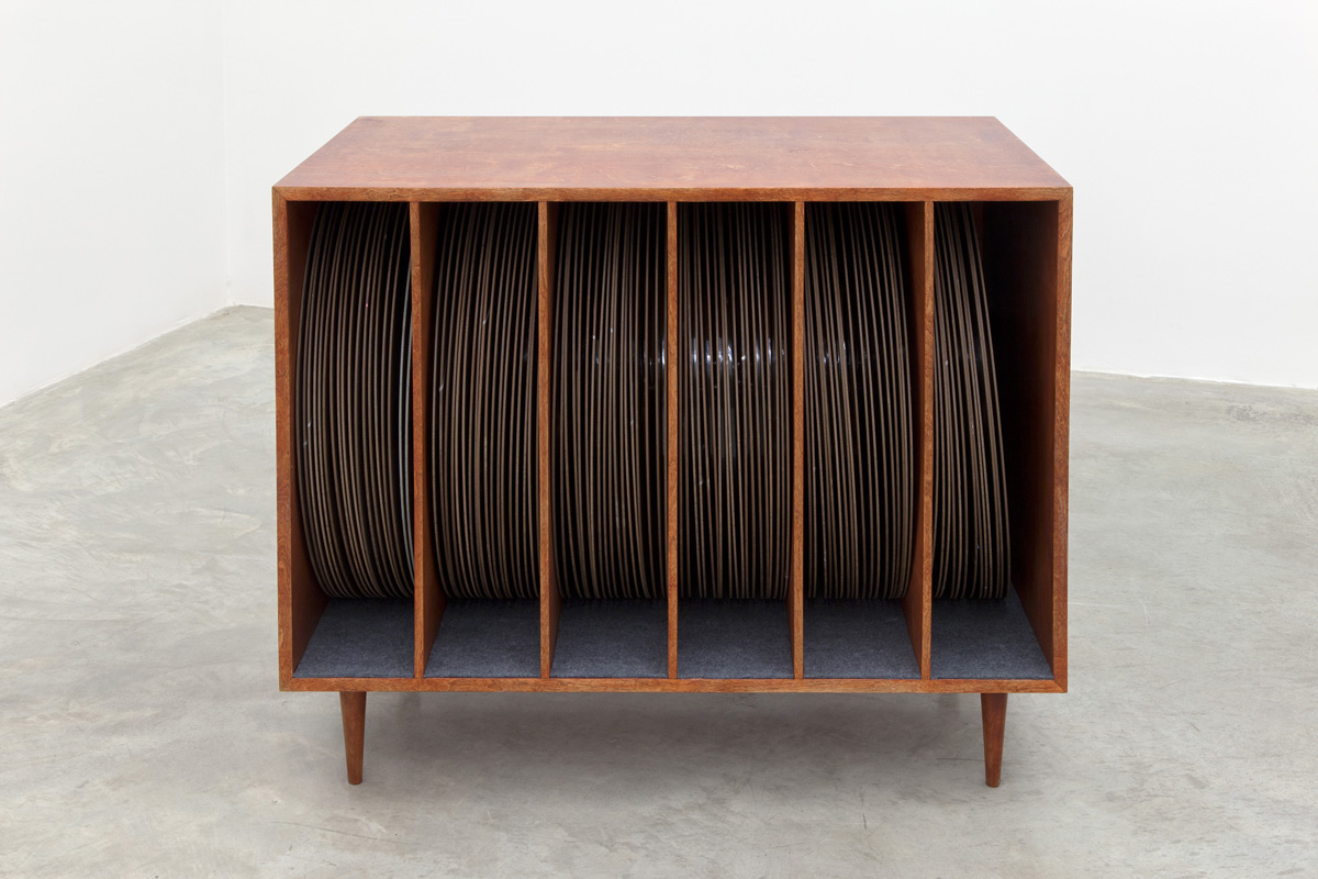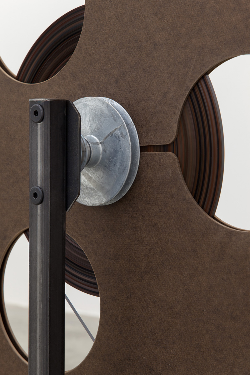 For the exhibition, Beasley has sourced approximately 4000 cassette tapes from family, friends, record stores and the Internet. Ranging from commercially sold audiobooks, popular music, independent labels, mixtapes, and home recordings, they have been cut and spliced together to create 52 reels, holding approximately 40 hours of sound and music each. These reels exist as mixes – combinations of various sounds by a number of authors that play constantly during the gallery’s opening hours, corresponding to a cycle of human consistency. Spanning intentions, genres, and decades, the resultant sound demonstrates a complex relationship with the history of the work’s materials. Their obsolescence at the same time triggers a series of familiarities and emotional connections.