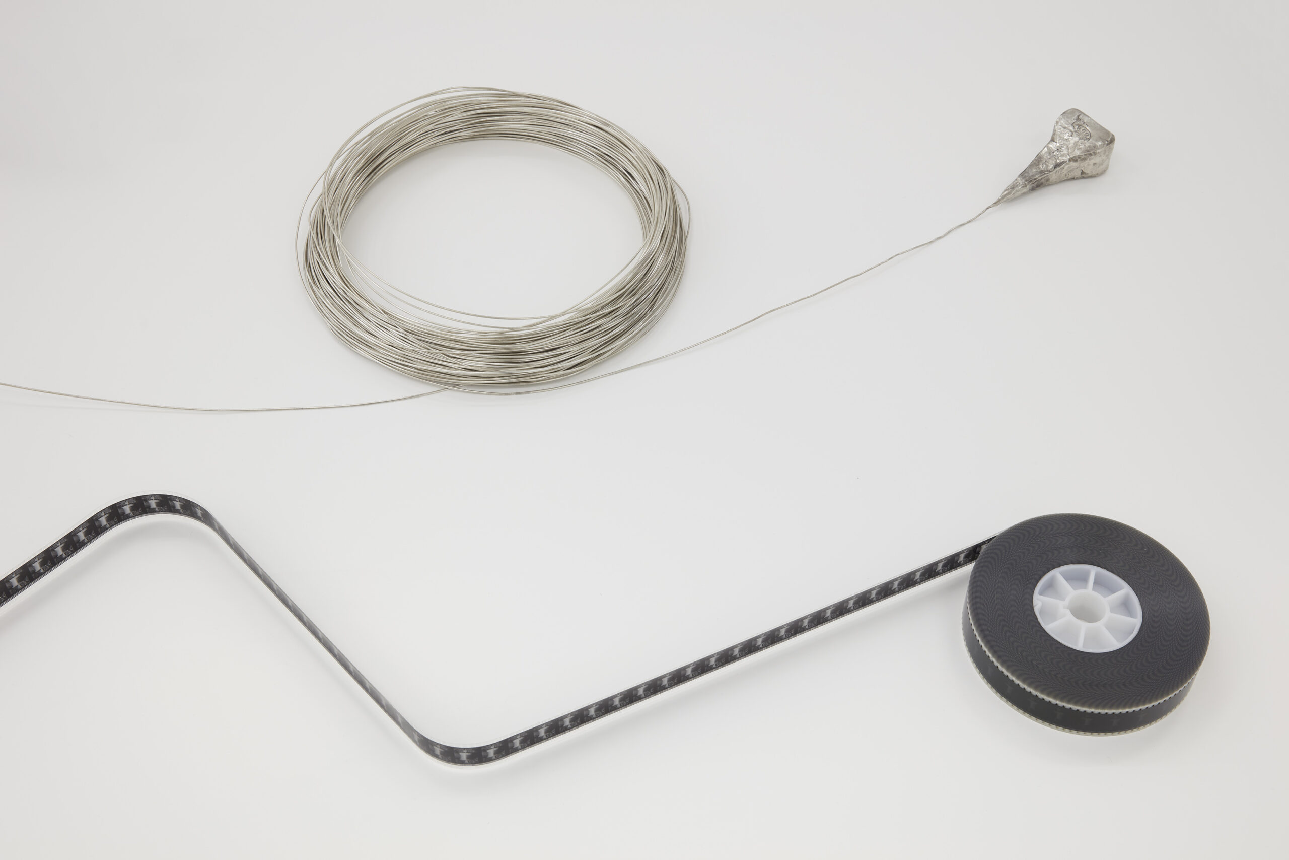 Extruded 5kg silver ingot, 35mm black and white film print with sound, 5kg of railway track