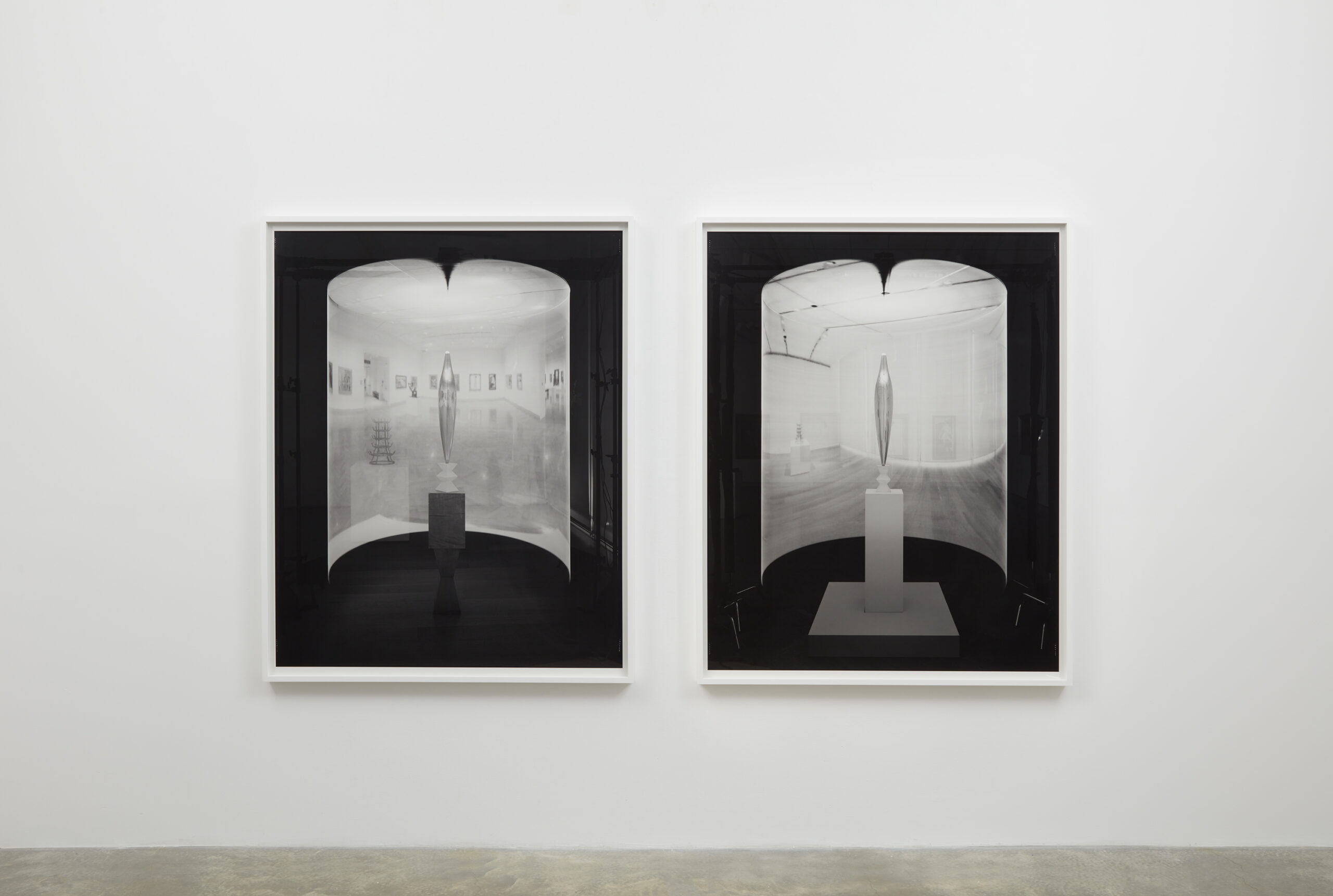 This imaginary journey is memorialized in two large photographs using DK179913, Rønn Andersen’s patented ‘technical arrangement,’ a revolving LED light source that projects images into space around objects. In this case, the two editions of Golden Bird in Chicago and Minneapolis coalesce during prolonged photographic exposures, resulting in hybrid images that appear to ‘teleport’ the sculptures from one institution to the other, most notably in the reflections of the birds' polished bronze surfaces.