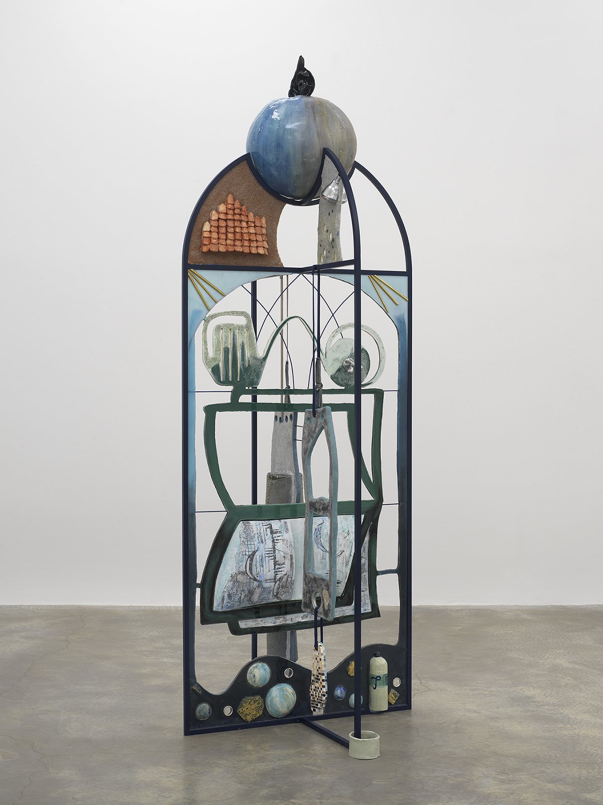 Wood, glass, metal, air-dried clay, epoxy resin, foam, polyurethane paint