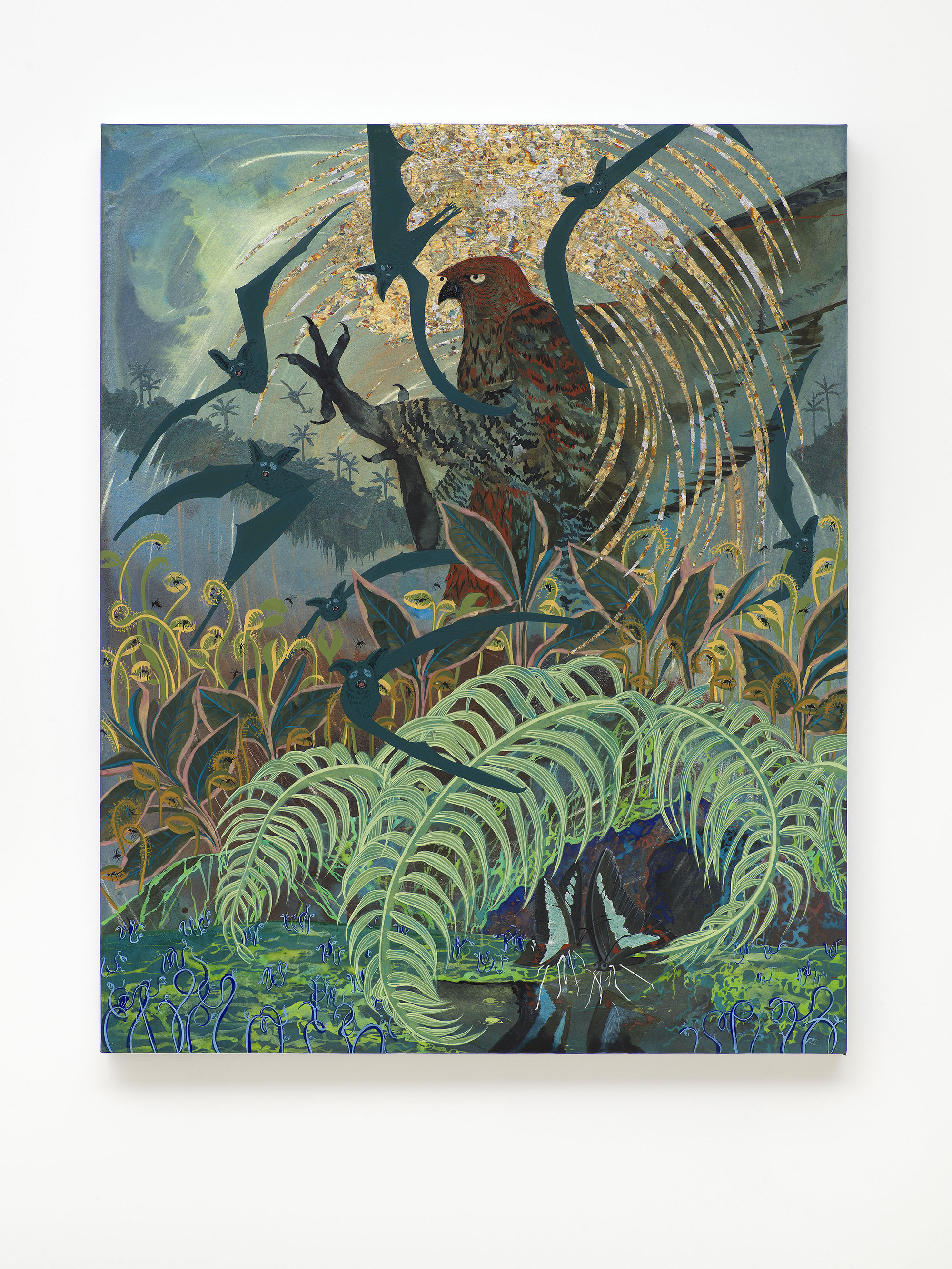 Watercolor, vinyl paint, and metal leaf on paper stretched over wood panels