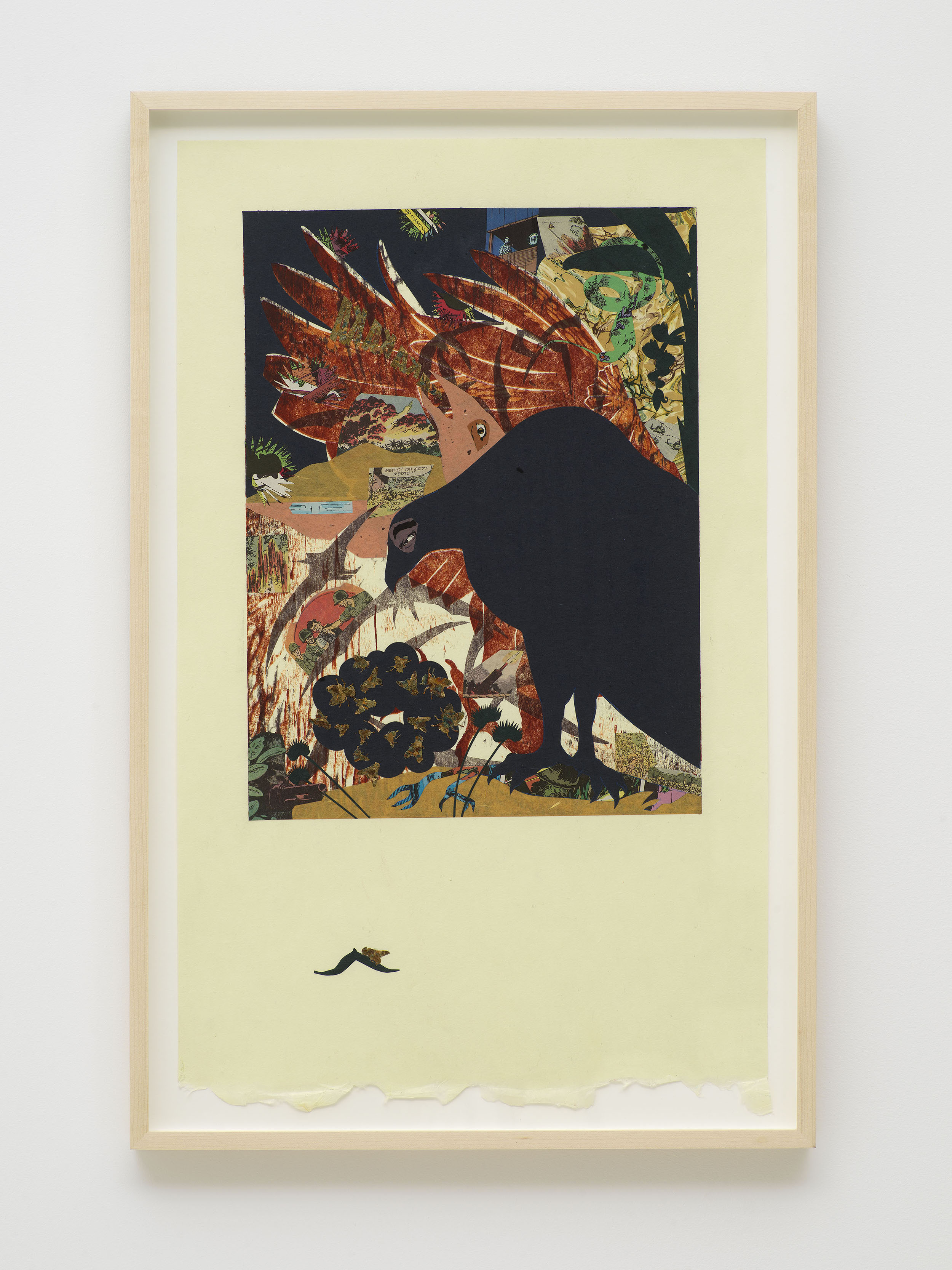 Woodblock print with collage on paper