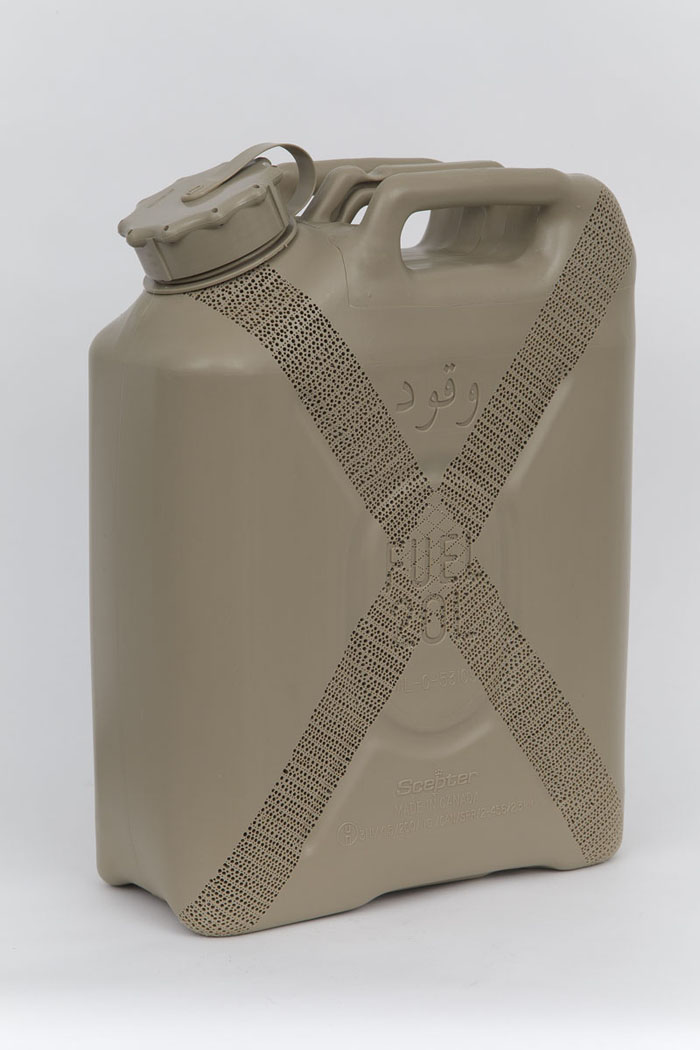 Carved gallon gasoline jug