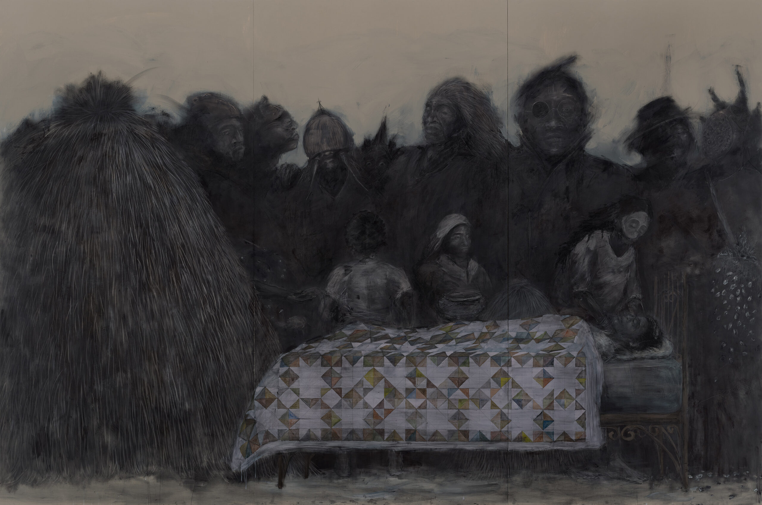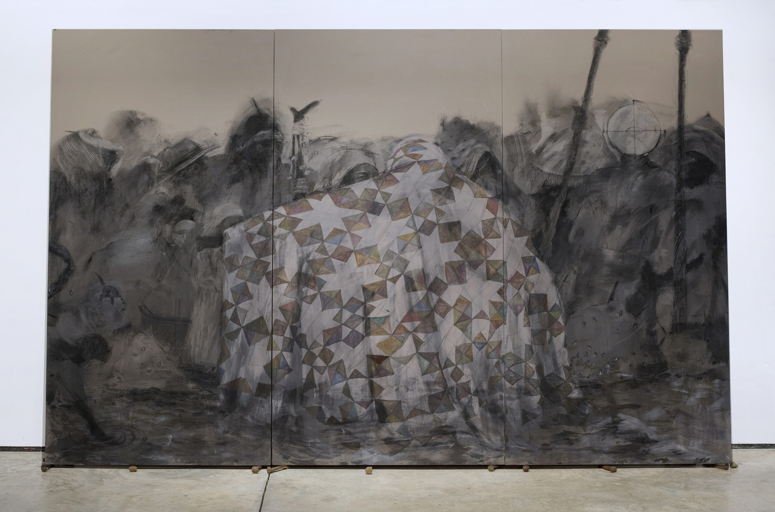 Acrylic, pigment, charcoal and graphite on wood