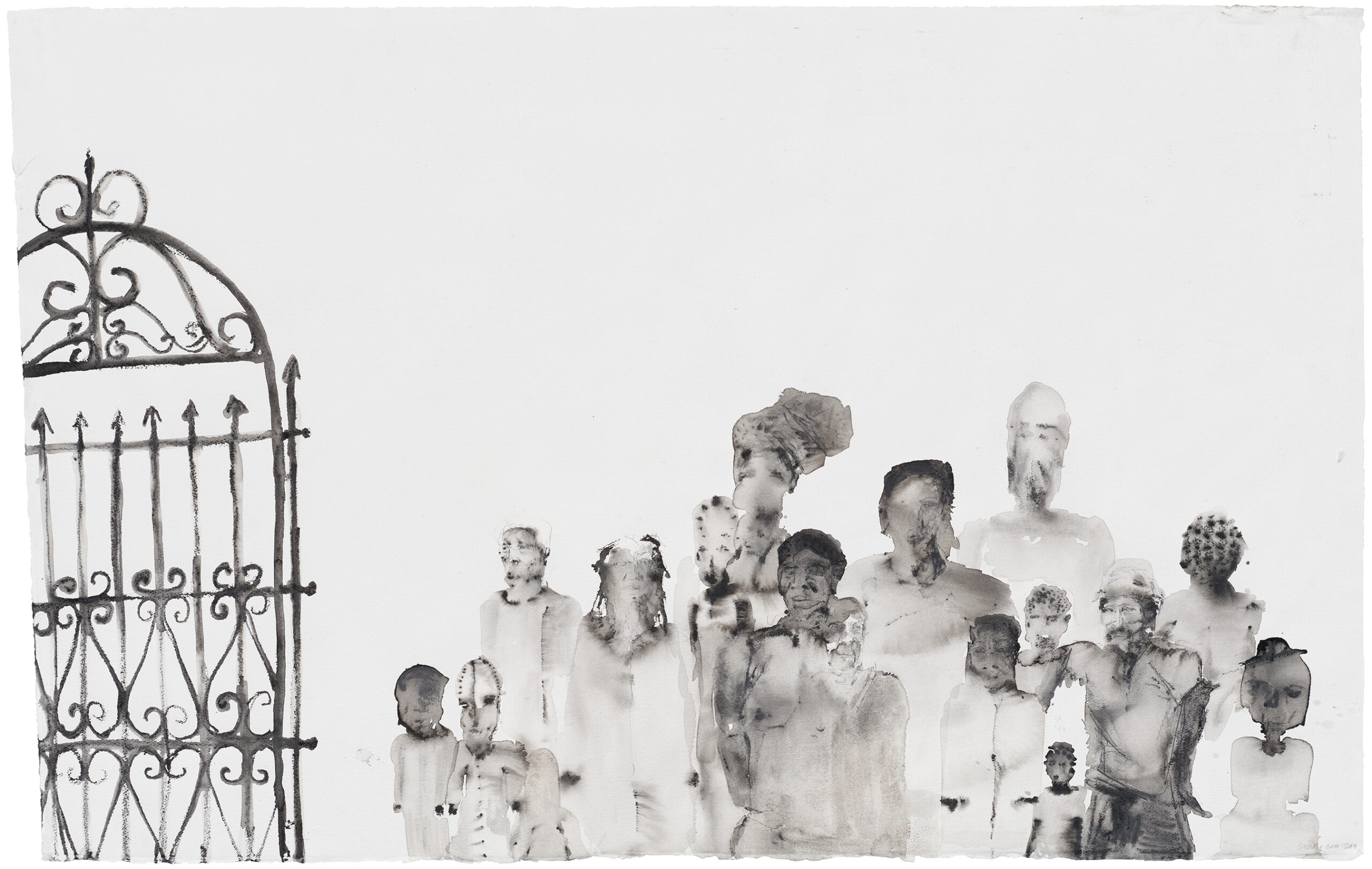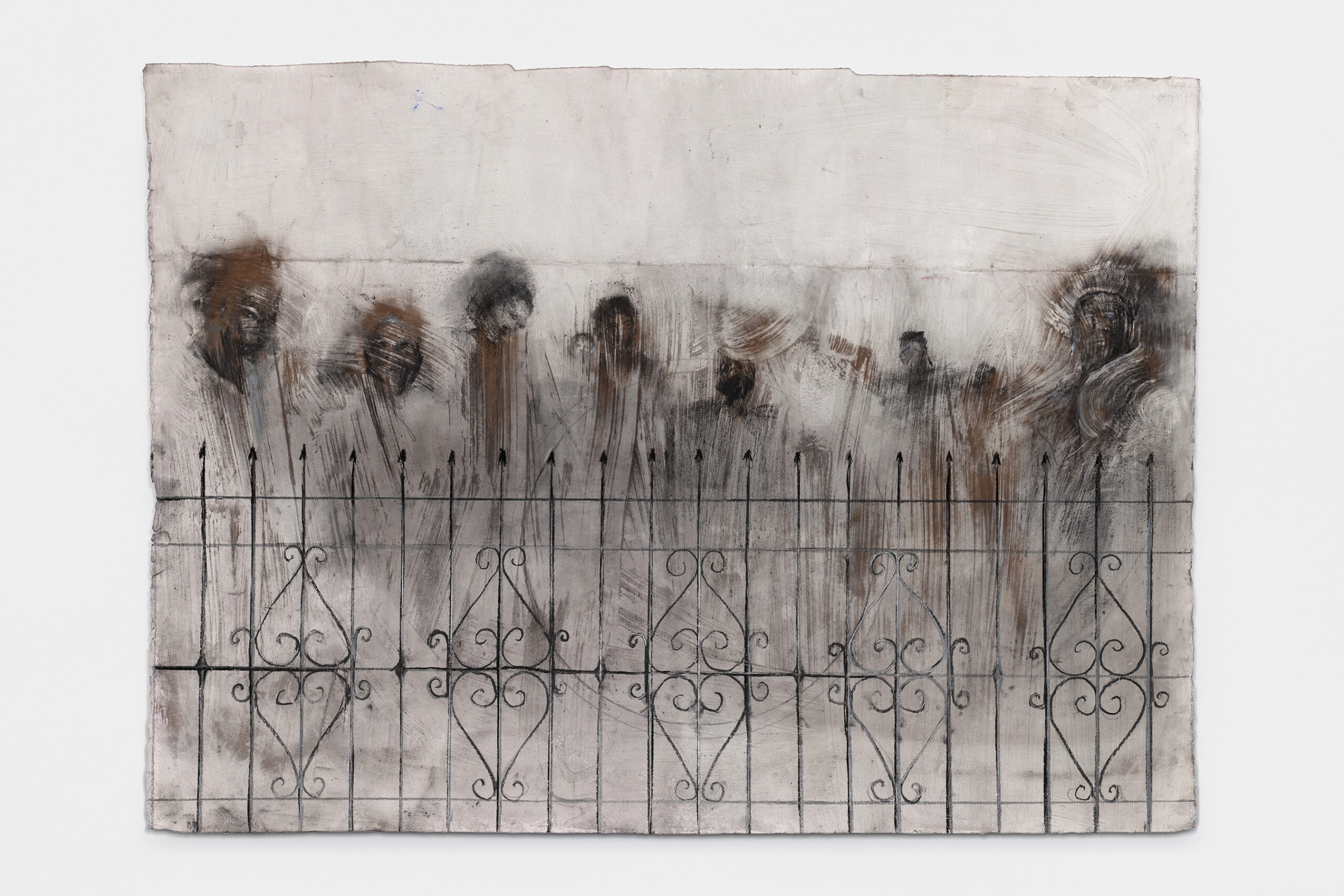 Acrylic, iron oxide, and charcoal on paper