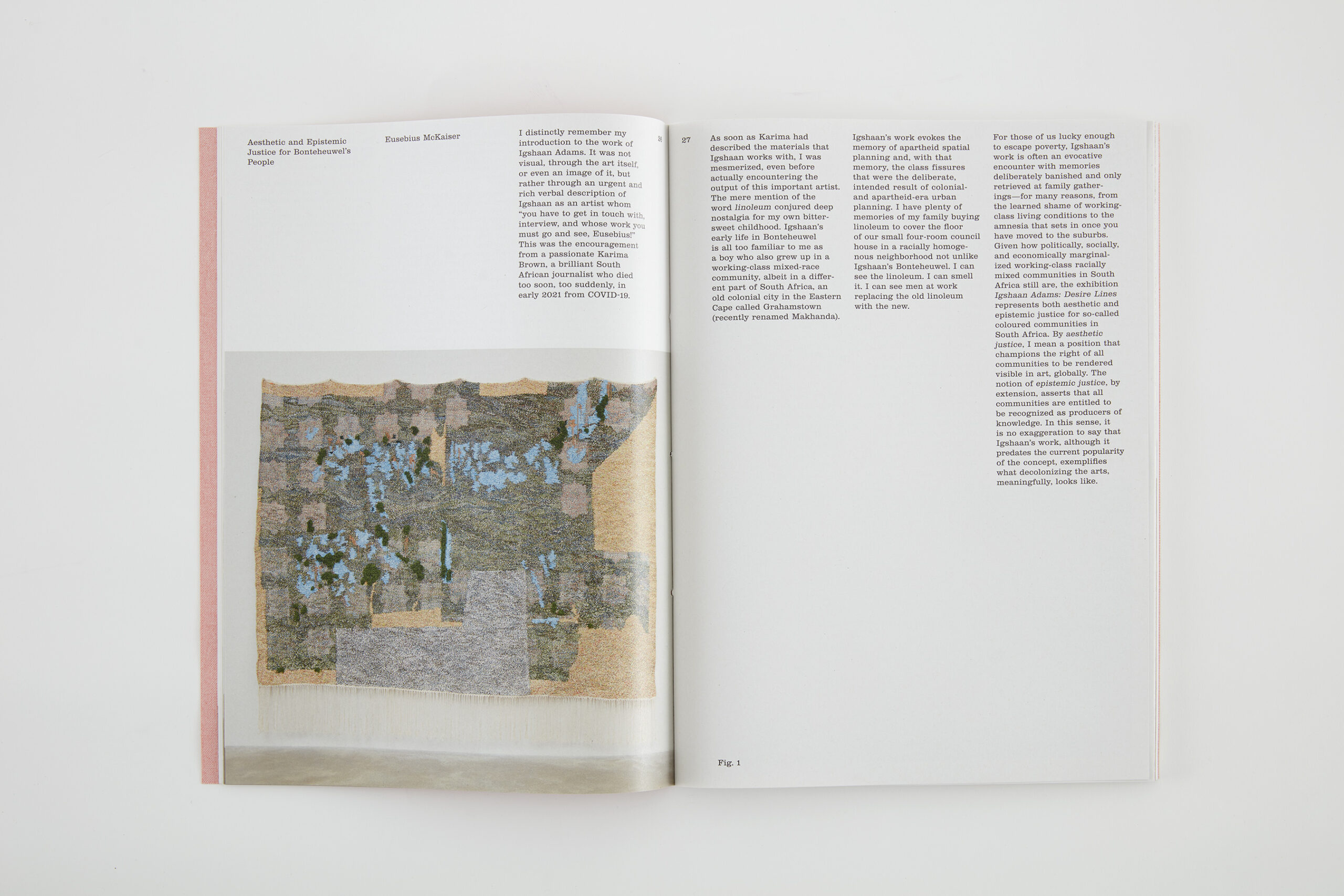 Texts by Lynne Cooke, Isaac Facio, Hendrik Folkerts, Josh Ginsburg, Imam Muhsin Hendricks, Eusebius McKaiser, Kathryn Smith, and Arnisa Zeqo, as well as two poems by Ocean Vuong.