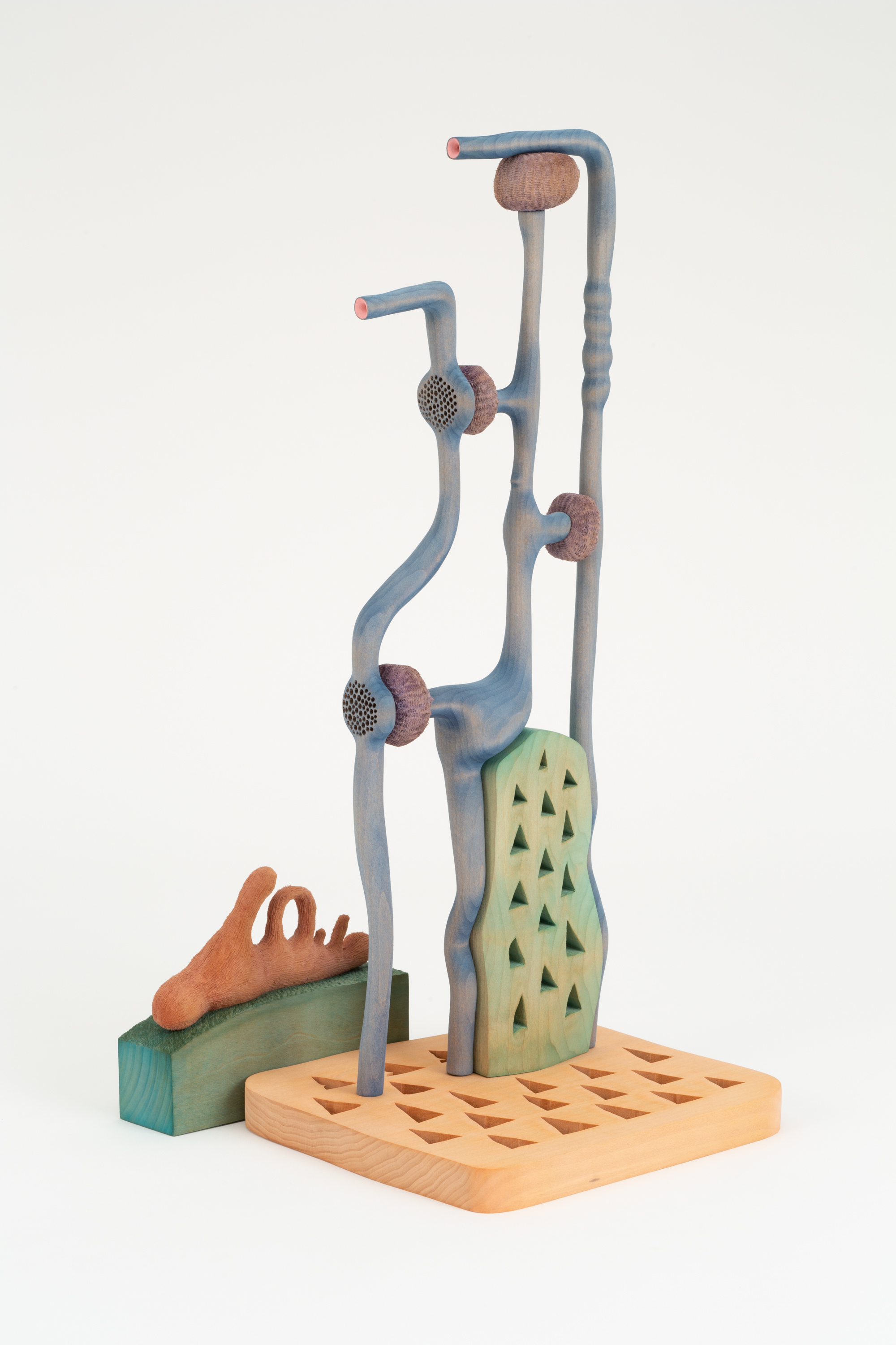 Basswood, dye, gouache, flocking, plastic, steel, epoxy